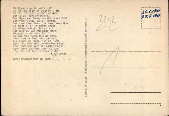 Zustand, siehe Scan, ungelaufen- Inh.: Hugo Timm - ca 15 cm X 10 cm