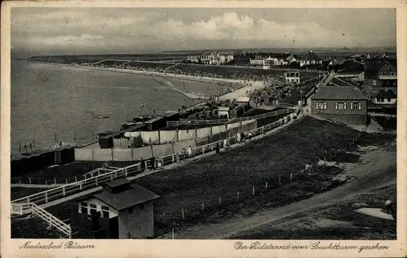 Ak Nordseebad Büsum, Nordseebad Risum, Strandansicht, Leuchtturm