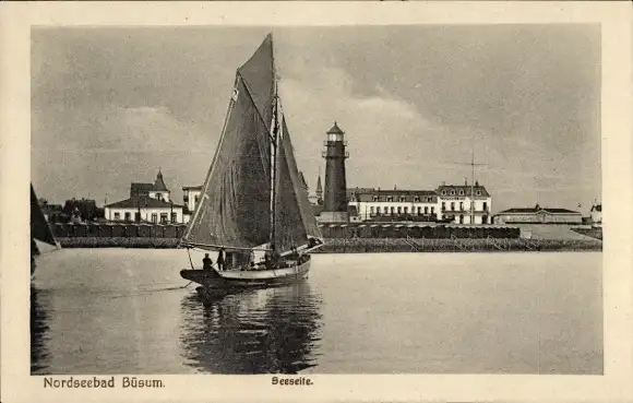 Ak Nordseebad Büsum, Seeseite, Leuchtturm, Segelboot
