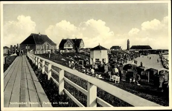 Ak Nordseebad Büsum, Strand, Leuchtturm