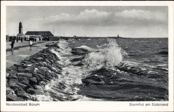 Ak Nordseebad Büsum, Sturmflut, Südstrand