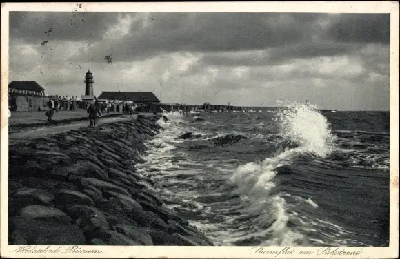 Ak Nordseebad Büsum, Sturmflut, Südstrand