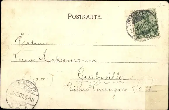Zustand, siehe Scan, gelaufen, 1901 - ca 14 cm X 9 cm