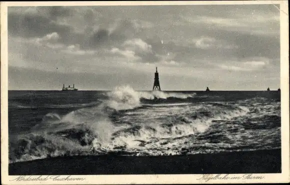 Ak Nordseebad Cuxhaven, Kugelbake im Sturm