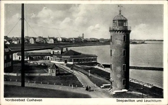 Ak Nordseebad Cuxhaven, Seepavillon, Leuchtturm