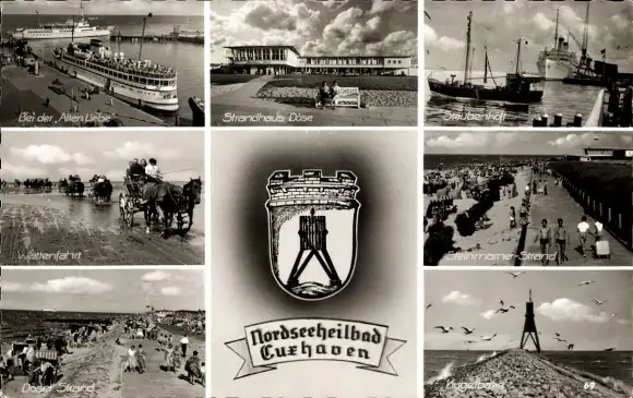 Ak Nordseebad Cuxhaven, Wappen, Wattenfahrt, Strandhaus Döse, Strand, Alte Liebe, Möwen