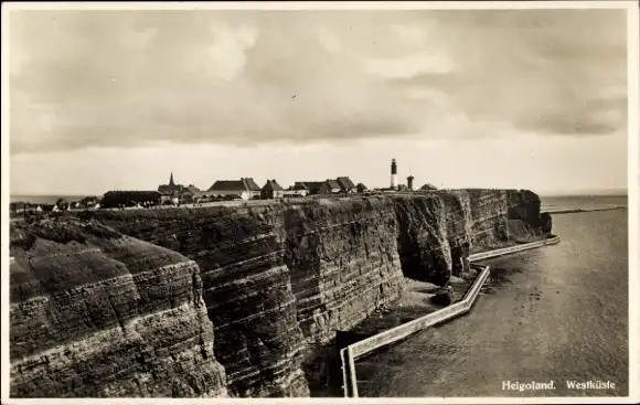 Ak Nordseebad Helgoland, Westküste, Leuchtturm