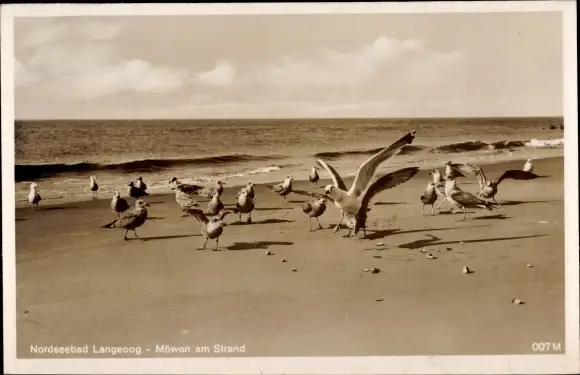 Ak Nordseebad Langeoog Ostfriesland, Möwen am Strand