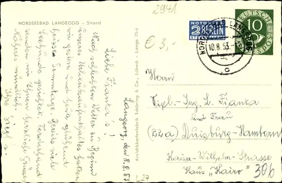 Zustand, siehe Scan, gelaufen, 1953 - ca 14 cm X 9 cm