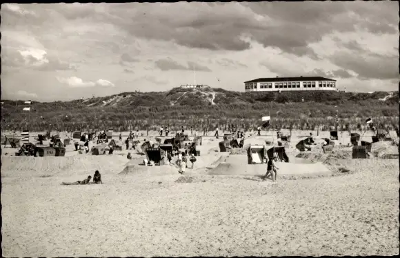 Ak Nordseebad Langeoog Ostfriesland, Strand mit Strandhalle