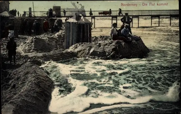 Ak Nordseebad Norderney Ostfriesland, Die Flut kommt