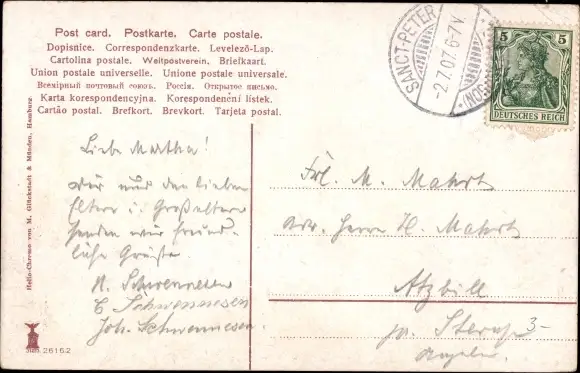Zustand, siehe Scan, gelaufen, 1907 - ca 14 cm X 9 cm