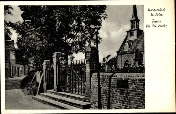 Ak Nordseebad Sankt Peter Ording, Partie bei der Kirche