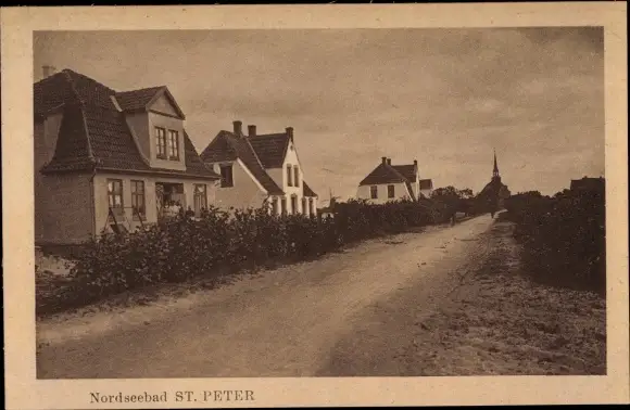 Ak Nordseebad Sankt Peter Ording, Straßenpartie, Kirche