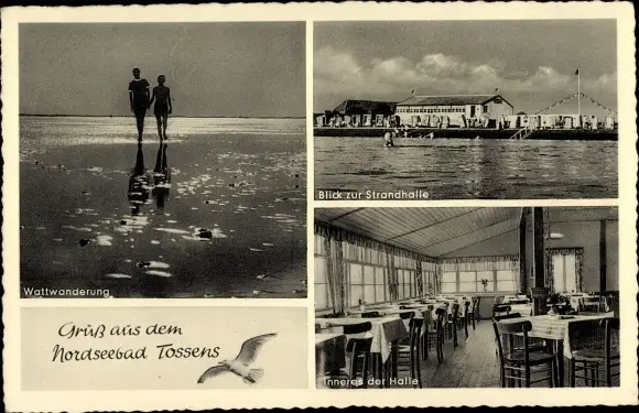Ak Nordseebad Tossens Butjadingen, Wattwanderung, Strandhalle