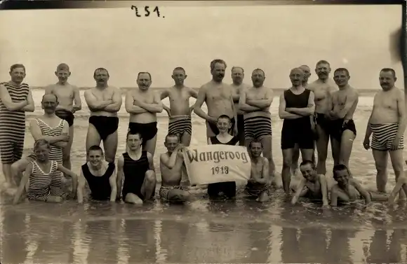 Ak Nordseebad Wangeroog Wangerooge in Ostfriesland, Gruppenbild Badegäste Strand 1913