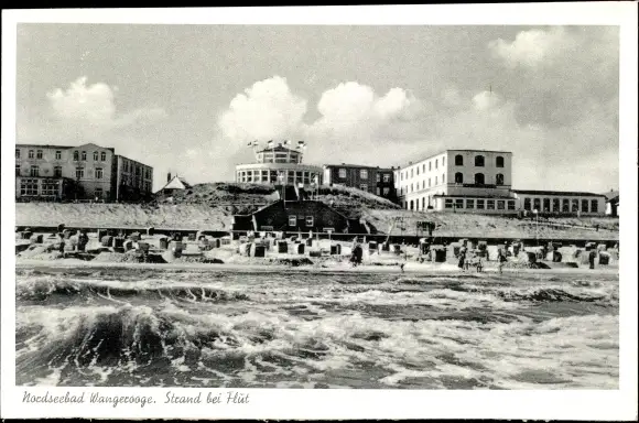 Ak Nordseebad Wangerooge, Strand bei Flut, Hotels
