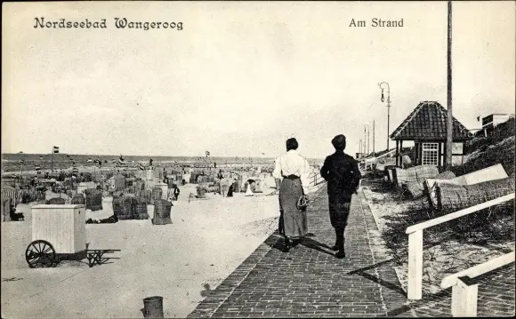 Ak Nordseebad Wangerooge in Ostfriesland, Am Strand, Strandkörbe, Promenade