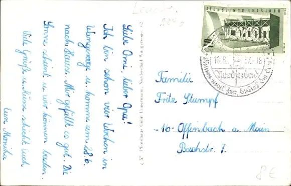 Zustand, siehe Scan, gelaufen, 1957 - ca 9 cm X 14 cm
