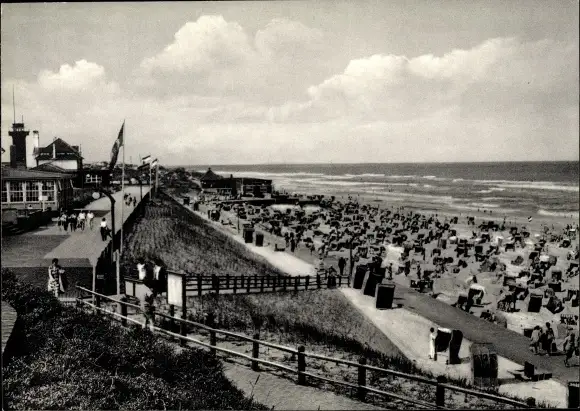 Ak Nordseebad Wangerooge in Ostfriesland, Strand mit Promenaden