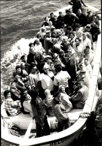 Ak Nordseeinsel Helgoland, Boot, Passagiere