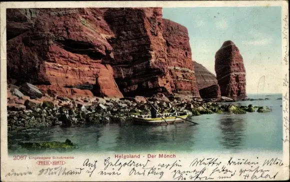 Ak Nordseeinsel Helgoland, Der Mönch, Ruderboot
