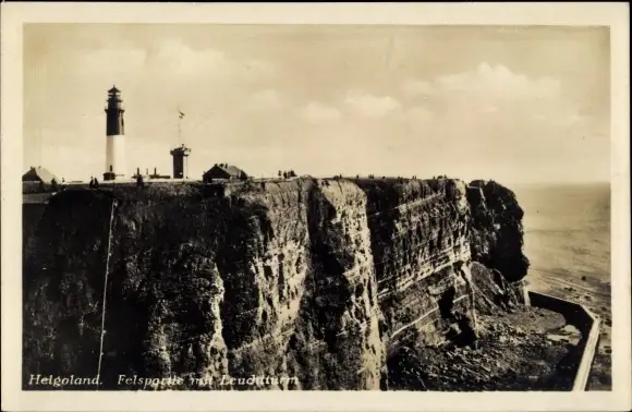Ak Nordseeinsel Helgoland, Felspartie mit Leuchtturm