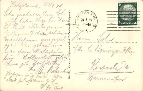 Zustand, siehe Scan, gelaufen, 1934 - ca 14 cm X 9 cm