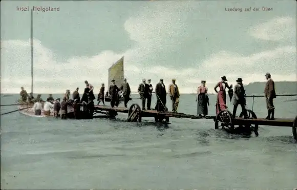 Ak Nordseeinsel Helgoland, Landung auf der Düne, Bootssteg