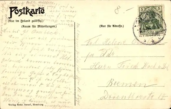 Zustand, siehe Scan, gelaufen, 1906 - ca 14 cm X 9 cm