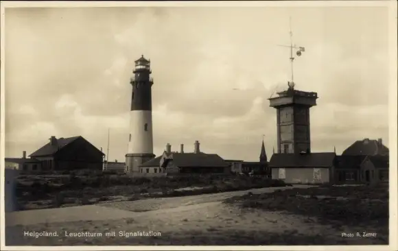 Ak Nordseeinsel Helgoland, Leuchtturm, Signalstation