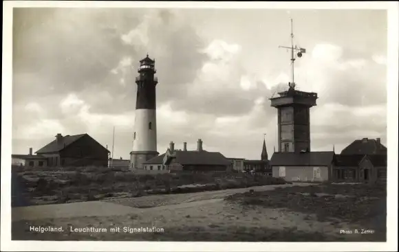 Ak Nordseeinsel Helgoland, Leuchtturm, Signalstation