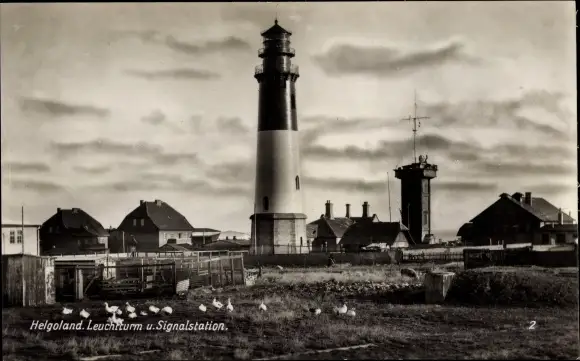 Ak Nordseeinsel Helgoland, Leuchtturm und Signalstation