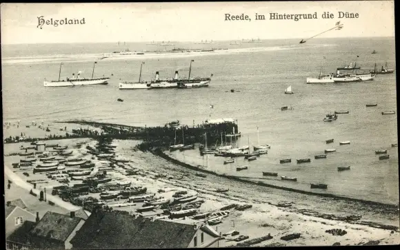 Ak Nordseeinsel Helgoland, Reede, Düne, Dampfer