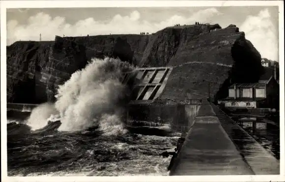 Ak Nordseeinsel Helgoland, Schwere Brandung an der Hafenmauer