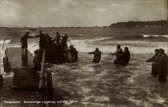 Ak Nordseeinsel Helgoland, Schwierige Landung auf der Düne