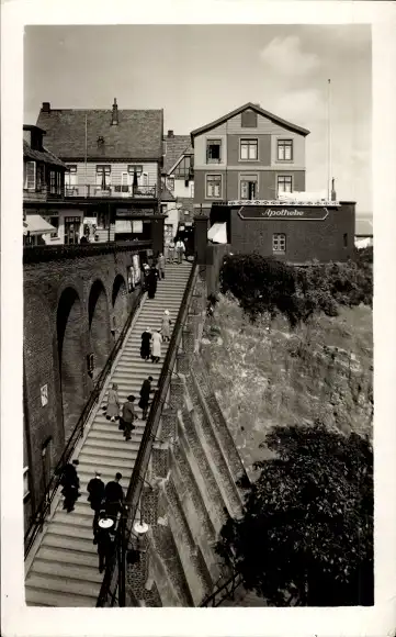 Ak Nordseeinsel Helgoland, Treppe zum Oberland, Apotheke