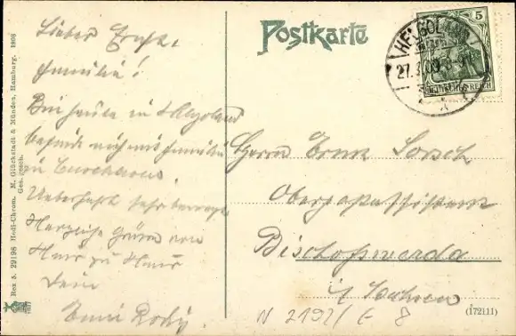Zustand, siehe Scan, gelaufen, 1909 - ca 14 cm X 9 cm