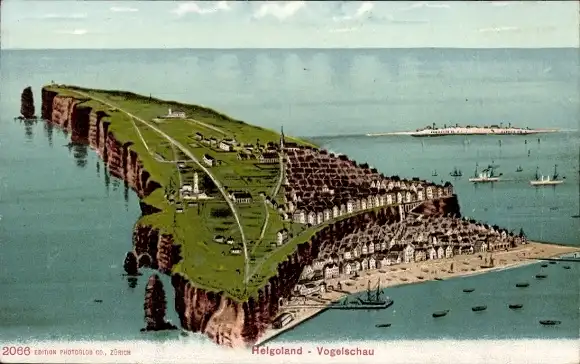 Ak Nordseeinsel Helgoland, Vogelschau, Boote, Strand