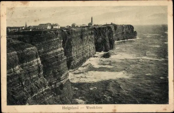 Ak Nordseeinsel Helgoland, Westküste, Leuchtturm