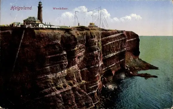 Ak Nordseeinsel Helgoland, Westküste, Leuchtturm