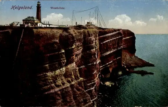 Ak Nordseeinsel Helgoland, Westküste, Leuchtturm