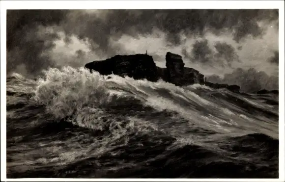 Ak Nordseeinsel Helgoland, schwerer Sturm