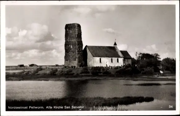 Ak Nordseeinsel Pellworm, Alte Kirche San Salvator von 1270