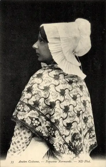 Ak Normandie, Frau in Volkstracht, Profil