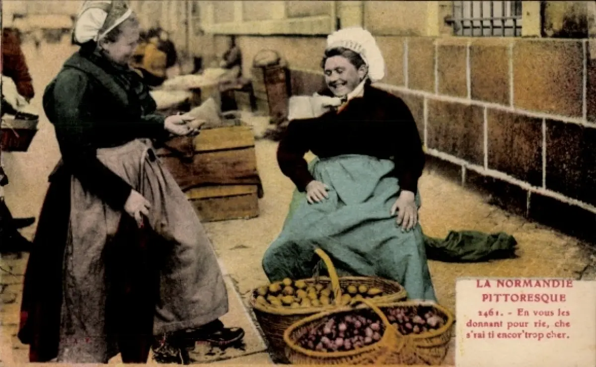 Ak Normandie, Markt, Händlerin, Volkstracht