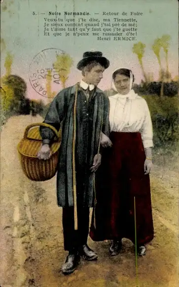 Ak Normandie, Paar in Volkstrachten