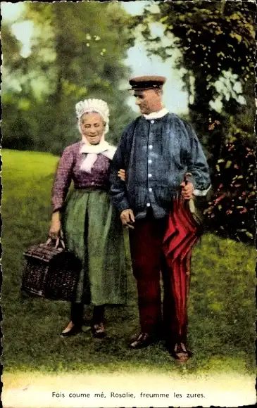 Ak Normandie, altes Paar in Trachten