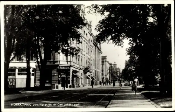 Ak Norrköping Schweden, Järnvägsgatan vid Carl Johans park