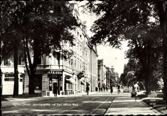 Ak Norrköping Schweden, Järnvägsgatan vid Karl Johans Park
